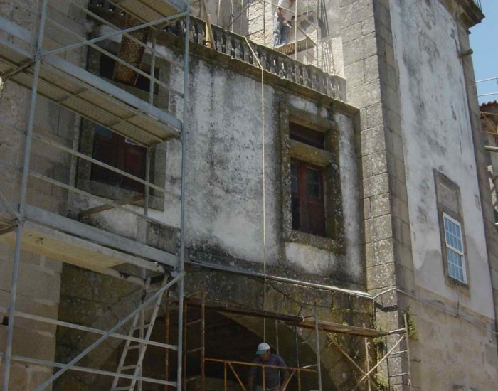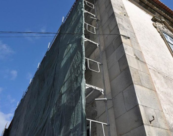 Надзор за выполнением контракта на восстановление фасада (консоль, внешние пролеты, усиление фронтона, главный и задний фасады) Palácio dos Condes de Anadia (классифицированное здание)